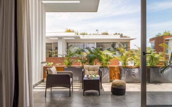 This villa in Goa for rent with a private pool showcases designer touches, boasting high ceilings, our signature Terrazzo flooring, and the personal touch of our thoughtful designers. Lounge in any of the sun-kissed rooms and feel at home while on vacation. Located in a quiet but well-connected area, this 3 BHK villa for rent in Goa is only a short distance away from some of the best restaurants that North Goa has to offer. Equipped with everything you need for a comfortable stay.