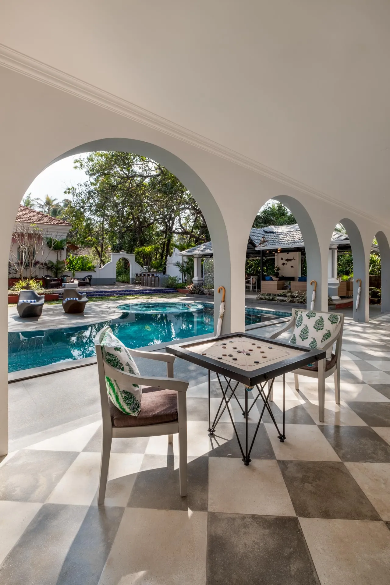 A beautifully restored, 100-year-old Goan-Portuguese home, a striking abode inspired by the neo-traditional style and a breathtaking courtyard that connects the two. Setting the right balance between the old and the new, is the charming Bastora House. With two grand bedrooms, picture-worthy bathrooms and a living and dining area, the heritage home takes you back in time while offering you all the luxuries of the modern world. The new wing, with its five spacious bedrooms, draws inspiration from the traditional and provides world-class amenities to make for a relaxing and comfortable stay. The expansive courtyard sets the stage for quality time with family and friends; have fun in the pool, enjoy delicious meals in the outdoor dining area or toast to special moments at the outdoor bar. Scenic, quaint and enveloped by greenery, the village of Bastora is just a stone’s throw away from Mapusa. With its ideal location, you can easily enjoy a picnic by the nearby Moira river or explore North Goa’s beaches, markets, trendy restaurants and cafés.