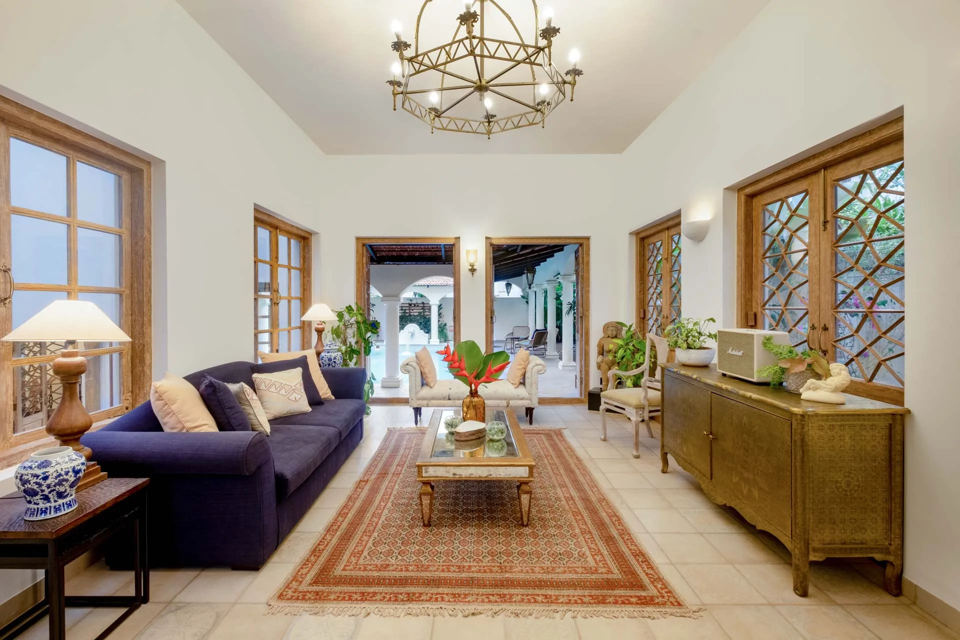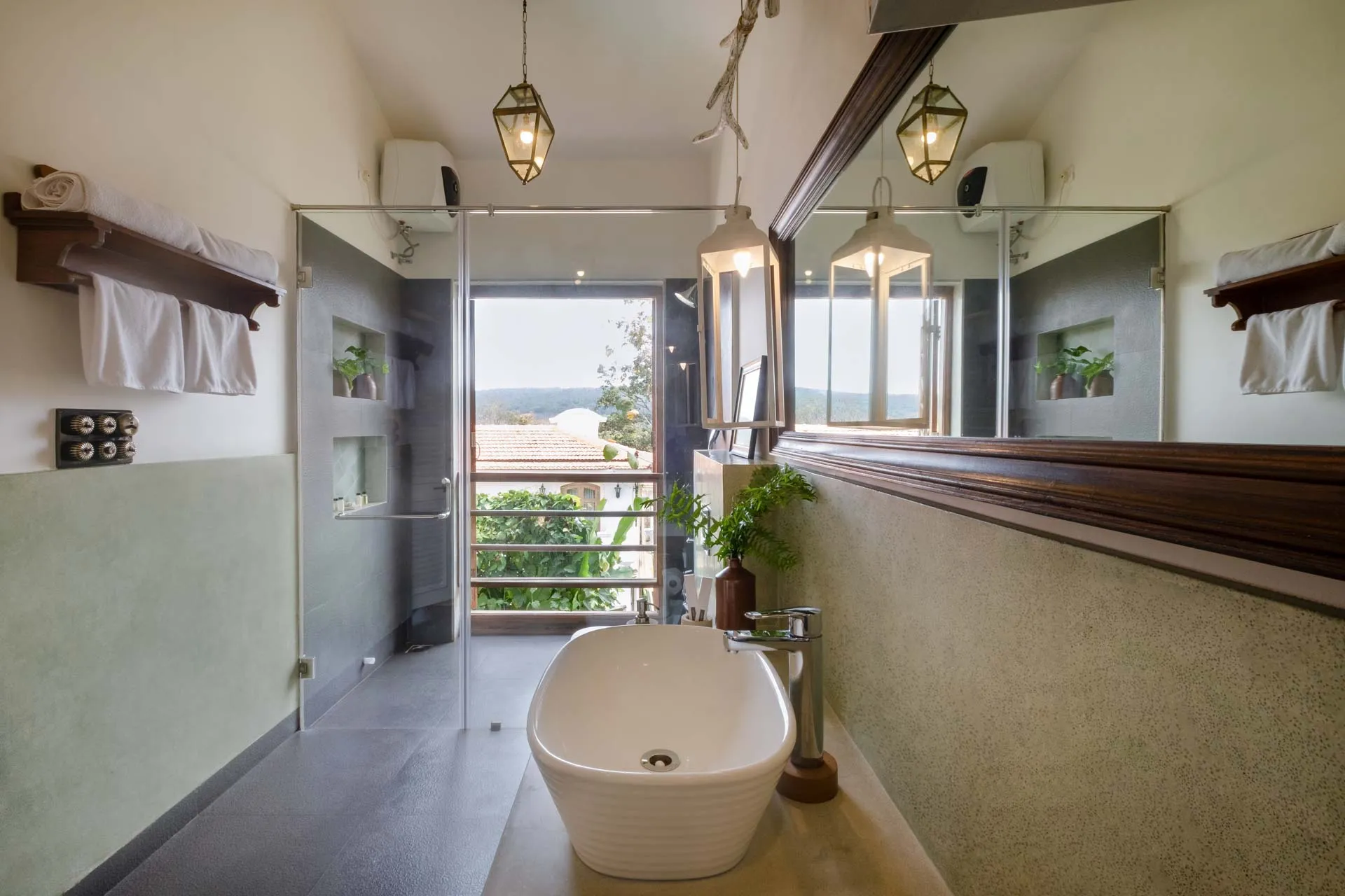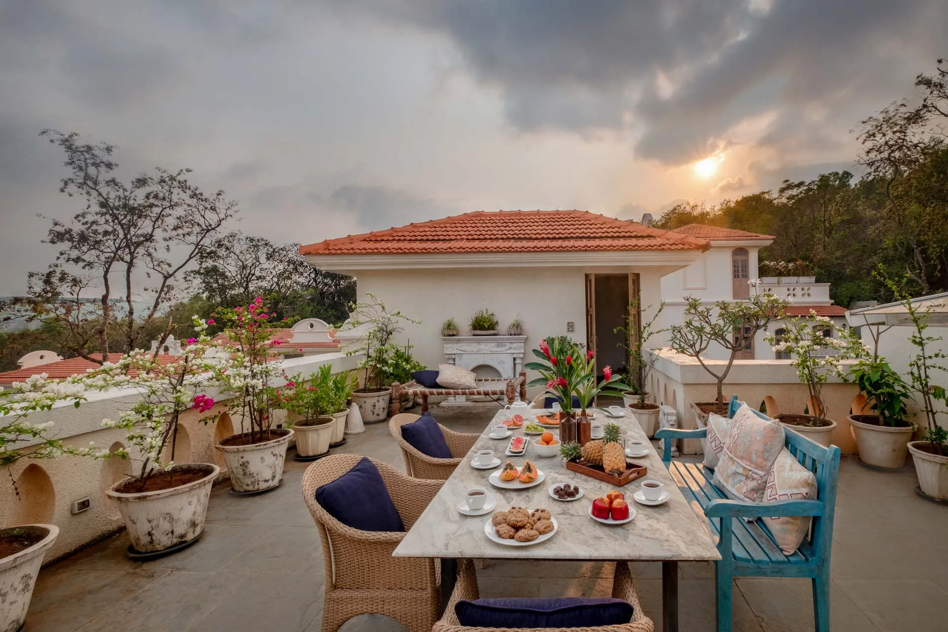 Villa E, part of Fonteira comprises of four bedrooms and a study room. Located in Assagaon, also known as “the Beverly hills of Goa”, the home is inspired by traditional Indian havelis. Bedrooms have ochre cane cabinets, brick-red tiles and wooden lattice work windows that make this home feel like a warm, welcoming space. Whenever you tire of lazing around in your poolside gazebo, head to the terrace for a meal under the stars.