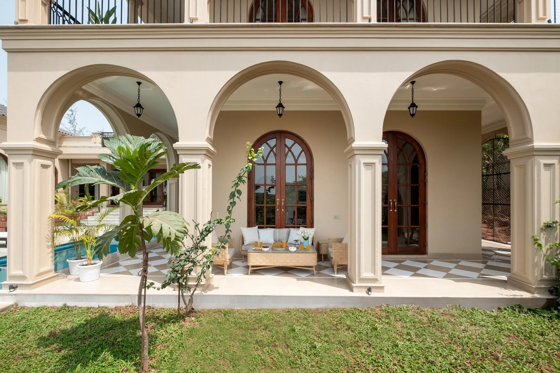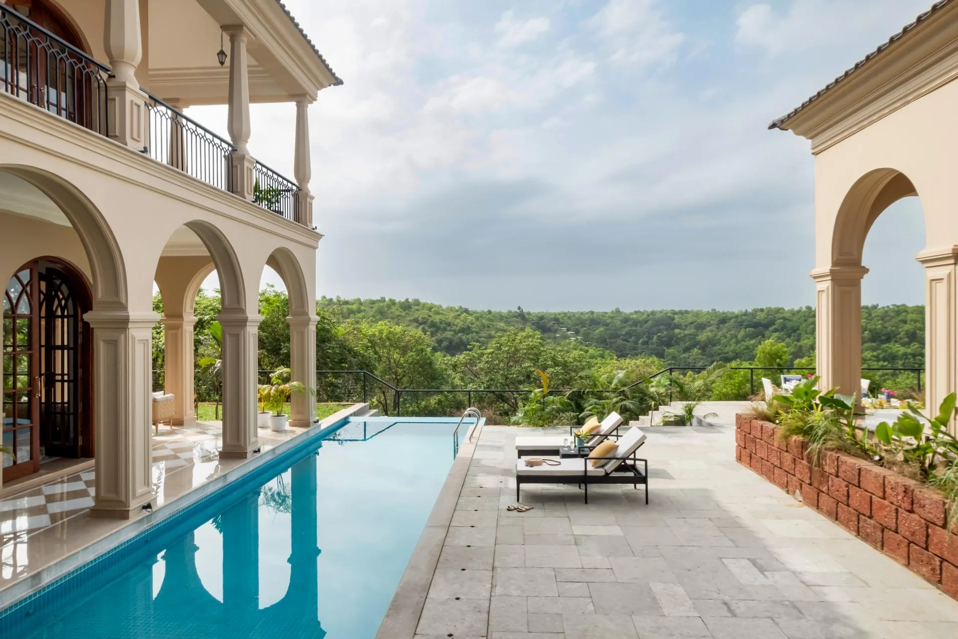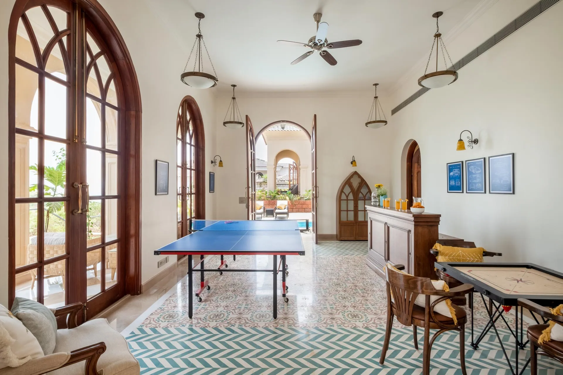 Part of an exclusive community of luxury villas sitting atop the hills of Mandrem, Sacri Borod Hill 7 offers stunning views of the sea and the verdant green surroundings. With five spacious bedrooms, a games room and a chic living and dining room, this grand Mediterranean style home is ideal for large groups, all year round. Choose to unwind by the beautiful private pool, the many sit-outs or the serene balcony; enjoy a tipple or two at the terrace bar as the sky puts on a spectacular show. Head down to the pristine Ashwem or Mandrem beach for some sun and sand or indulge in rejuvenating wellness therapies at one of the many spas in the area. Dine out at some of the trendiest cafés and restaurants in North Goa, or stay in and let our team organise an unforgettable dining experience, in the comfort of your own villa.