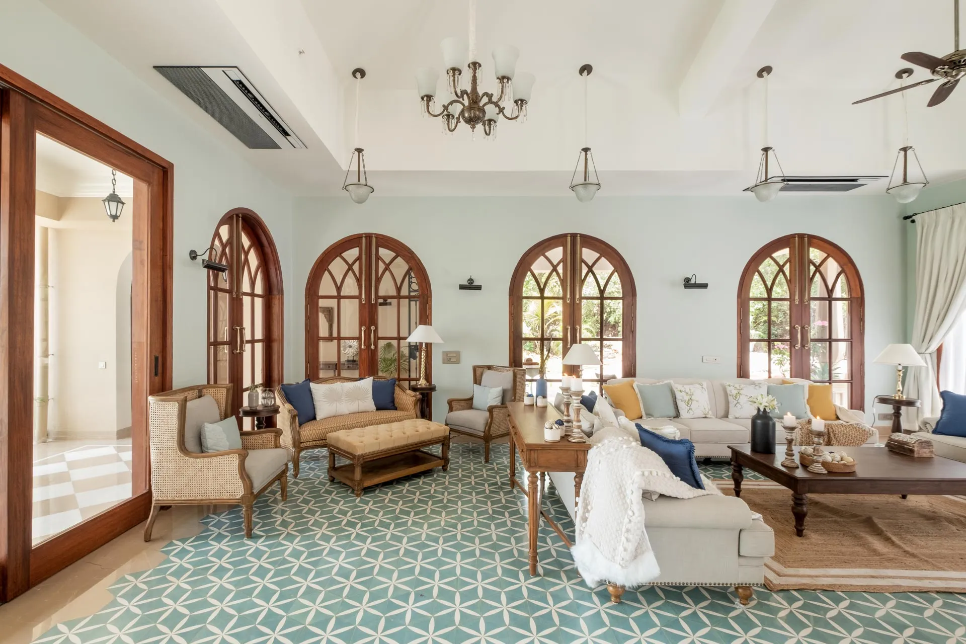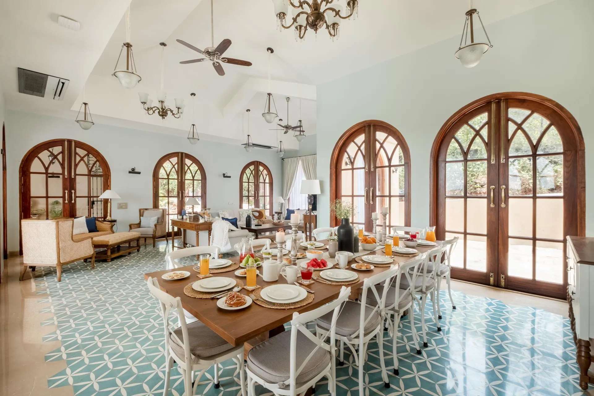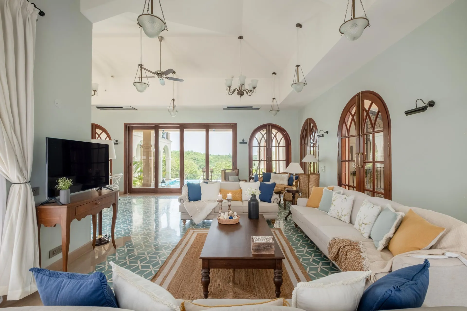 Part of an exclusive community of luxury villas sitting atop the hills of Mandrem, Sacri Borod Hill 7 offers stunning views of the sea and the verdant green surroundings. With five spacious bedrooms, a games room and a chic living and dining room, this grand Mediterranean style home is ideal for large groups, all year round. Choose to unwind by the beautiful private pool, the many sit-outs or the serene balcony; enjoy a tipple or two at the terrace bar as the sky puts on a spectacular show. Head down to the pristine Ashwem or Mandrem beach for some sun and sand or indulge in rejuvenating wellness therapies at one of the many spas in the area. Dine out at some of the trendiest cafés and restaurants in North Goa, or stay in and let our team organise an unforgettable dining experience, in the comfort of your own villa.